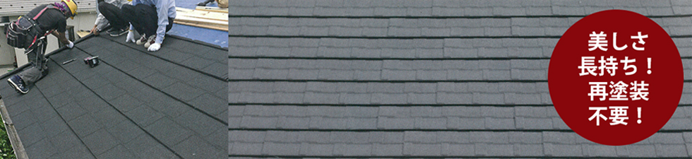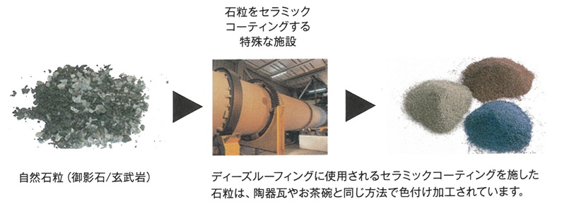 天然石とガルバリウム鋼板のハイブリッド屋根材。