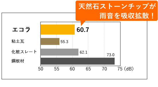 天然石ストーンチップの凸凹が雨音を吸収・拡散するので静かな室内環境を実現します。