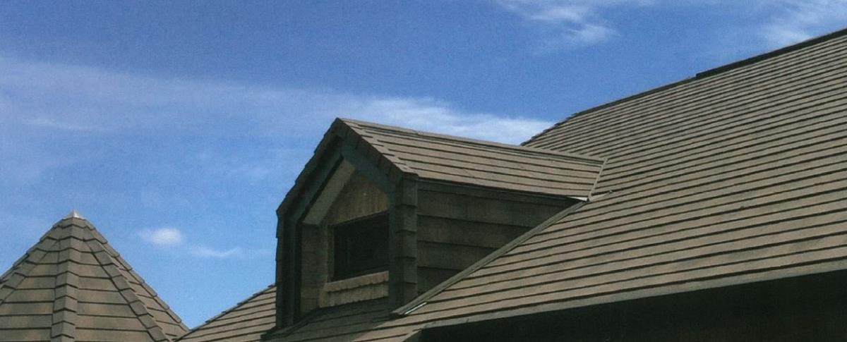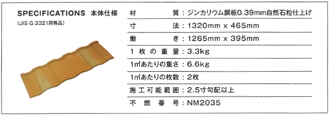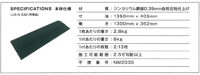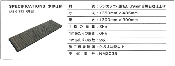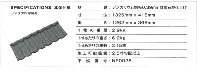 超軽量で建物負担の少ない天然石付き金属屋根材です。