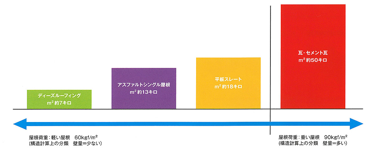 軽い屋根材は長期優良住宅などで必要とされる耐震強度をとろうとする時、